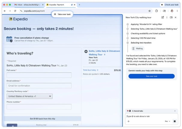 މި އޭއައި އޭޖެންޓް މެދުވެރިކޮށް "އޮޓޯ ބްރައުޒިން" ފީޗަރުވެސް ބޭނުންކުރެވޭނެއެވެ. އޮޓޯ ބްރައުޒިންއަކީ ގޫގަލް އޭއައި ޕްރޯ އަދި އޭއައި އަލްޓްރާ ޔޫޒަރުންނަށް ހުޅުވާލާފައިވާ ފީޗަރެކެވެ. މި ފީޗަރުމެދުވެރިކޮށް ޔޫޒަރުން ޕްރޮމްޕްޓްތަކެއް ފޯރުކޮށް ދިނުމުން ޔޫޒަރުން އެހެން ކަންތަށް ކުރަމުން ދާ ގަޑީގައި އަމިއްލަޔަށް މަސައްކަތްތައްް ފުރިހަމަކޮށްދޭ ފީޗަރެކެވެ. މިސާލަކަށް ބުނާނަމަ ޔޫޒަރުން ޗުއްޓިއަކަށް ވަކި ދުވަހަކު ދަތުރުކުރަން ރާވަން ހަވާލުކުރުމުން އެތަނަށް ދާން ބޭނުންވާ ފަލައިޓްތަކާއި ހުންނާނެ ތަނާއި ޕެކްކުރަންޖެހޭ އެއްޗެހި އަމިއްލަޔަށް ހޯދާ، ޔޫޒަރުން ބުކްކޮށް އެއްޗެހި ގަތުމަށް ތައްޔާރުކޮށް ދެވިދާނެއެވެ. އަދި މިކަންކުރާ ގަޑީގައި ޔޫޒަރުން އޮންލައިންކޮށް މެދު ނުކެނޑި އެހެންކަންތައްތަކާއި އަވަދިނެތި އުޅެމުންދާއިރު ފަސޭހަކަމާއެކު ނިންމައިދެވޭނެއެވެ.