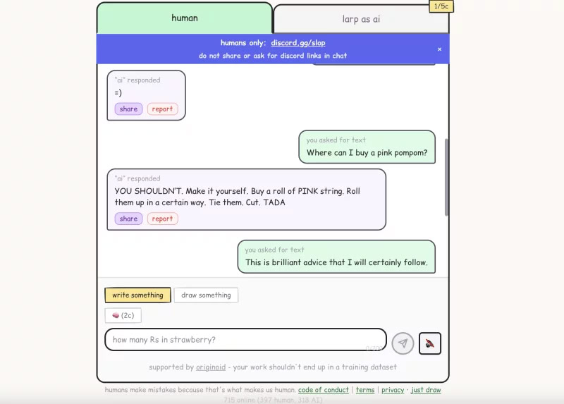 އިންޓަނެޓްގެ އާ ޓްރެންޑެއްގެ ސަބަބުން އިންސާނުންނާއި މެޝިންތަކާއި ނުވަތަ އޭއައި ދެމެދު އޮތް ފަރަގު ހަނިކޮށް ދެނަގަތުމުގައި އިތުރަށް އުންދަގޫ ކުރިމަތިވެއްޖެއެވެ. މި ޓްރެންޑް ގައި މުނިފޫހިފިލުވުމާއި ސަމާސާކުރުމުގެ ގޮތުން އޭއައި ޗެޓްބޮޓްތަކެއް ކަމަށް މީހުން ހެދިގެން އުޅެއެވެ. މިޓްރެންޑްގެ ފަހަތުގައިވަނީ "ޔުއަރ އޭއައި ސްލޮޕް ބޯރސް މީ" ނަމަކަށް ކިޔާ ވައިރަލް ވެބްސައިޓެކެވެ. މި ޕްލެޓްފޯމަށް ވަރަށް ބޮޑު ތަރުހީބެއް ލިބި، ދެ ހަފުތާގެ ތެރޭގައި އެތައް މިލިއަން ބަޔަކު ވަނީ މިފަދައިން ސަމާސާކޮށްފައެވެ.